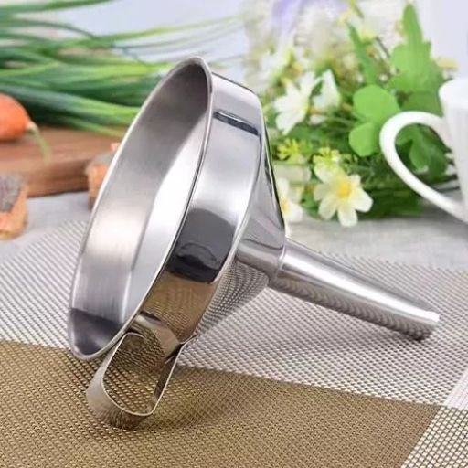 Funil Aço Inox Médio 12x12cm Com Alça Garrafas Óleo Multiuso Liquido Suco Recipientes Higiênico