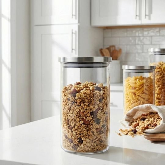 Pote Vidro Hermético Tampa Metal Mantimentos Biscoito Café Grande Organizador Cozinha 1,365L Ruvolo