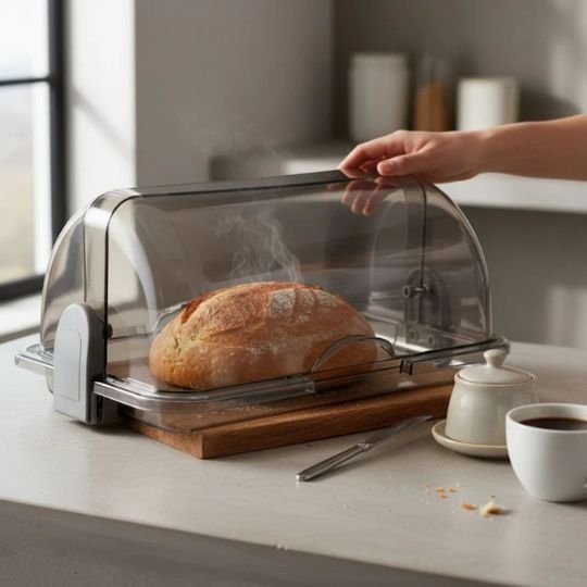 Porta Pão Cristal Armazenador Com Tampa Articulável Profissional Para Pães Bolos Mesa 30x20cm