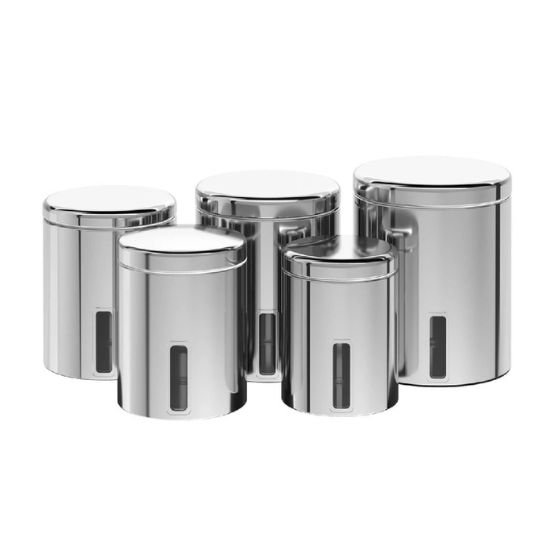 Conjunto de Potes para mantimentos 5 Peças Inox com tampa e visor - Brinox - Ref.2104/211