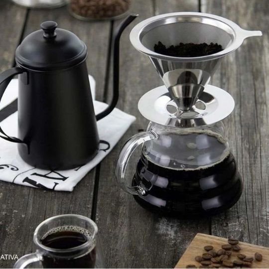 Coador Filtro De Café Inox 14x09 cm Grande Reutilizável Pour Over Lavavel Não utiliza Papel