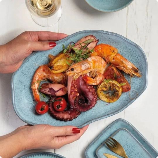 Travessa Oval Rasa Média Bio Breeze 30x20cm Azul Porto Brasil
