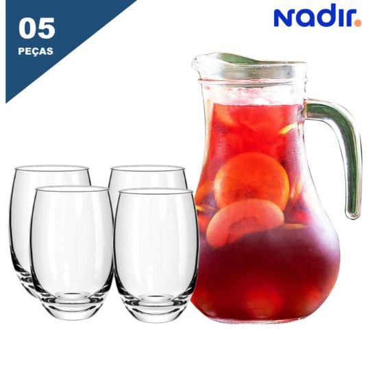 Jarra de Vidro Tropicana 1.7 Litros Nadir + Jogo de Copos de Vidro 4 Peças