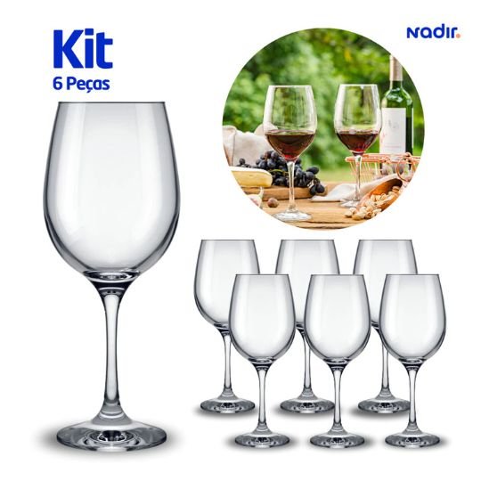 Jogo de Taça Vinho Água Barone 490 ml Nadir Kit 6 Unidades