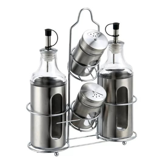 Jogo De 2 Galheteiros 350ml E 2 Paliteiro e saleiro Vidro C/ Suporte
