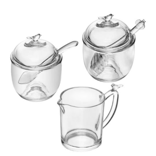 Kit Leiteira + Açucareiro + Meleira C/ Pegador Em Cristal Wolff