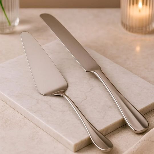 Conjunto 2 Peças Para Bolo De Aço Inox Positano Sobremesa Espátula e Faca